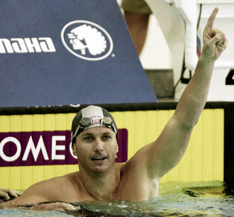 На проходящем в канадской Виктории чемпионате Тихоокеанского региона побит очередной мировой рекорд. Автором нового достижения на дистанции 200 метров на спине стал олимпийский чемпион Аарон Пирсол. Американский пловец достиг финиша спустя 1 минуту и 44,1 секунды. Предыдущий мировой рекорд, установленный им же 29 июля 2005 года в Монреале, составлял 1.54,66. |