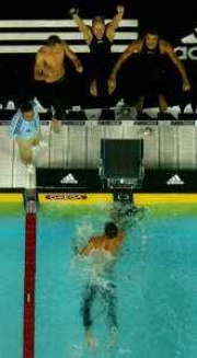 32-летний Александр Попов, трехкратный чемпион мира в индивидуальных состязаниях, завоевал свое первое "золото" в эстафете. |