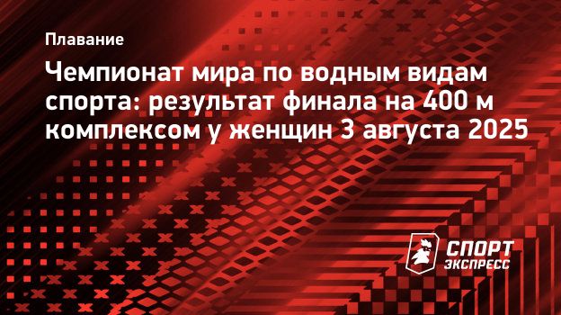 Канадская пловчиха Саммер Макинтош победила в финальном заплыве на дистанции 400 метров комплексным плаванием на чемпионате мира в Сингапуре. Она установила новый рекорд чемпионатов мира — 4 минуты 25,78 секунды.