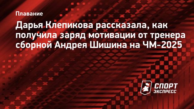 Российская пловчиха Дарья Клепикова рассказала «СЭ», как получила заряд мотивации от главного тренера сборной Андрея Шишина на ЧМ-2025 перед победным финалом смешанной комбинированной эстафеты 4х100 м.