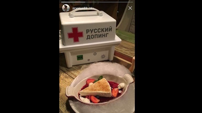 Четырехкратная чемпионка мира Юлия Ефимова в шутливой форме на своей странице в Instagram продемонстрировала, как выглядит "русский допинг". В действительности это подарочный набор с едой. Этот необычный подарок она получила от телеканала RT.