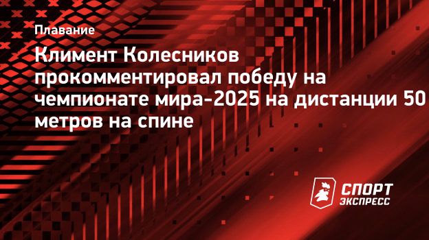 Российский пловец Климент Колесников прокомментировал победу на чемпионате мира-2025 на дистанции 50 метров на спине.