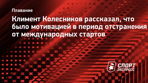 Двукратный призер Олимпиады Климент Колесников рассказал «СЭ» о том, что в период отстранения от международных стартов его мотивацией было установление мировых рекордов.