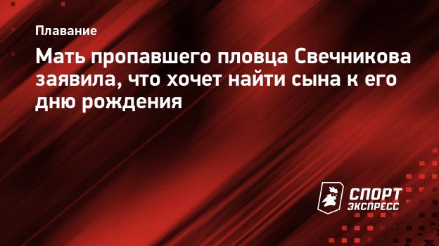 Мать пропавшего пловца Свечникова заявила, что хочет найти сына к его дню рождения