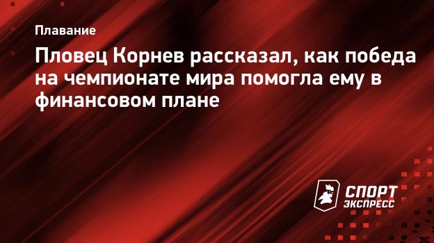 Пловец Корнев: «Победа на чемпионате мира помогает финансово — можно купить новый Nissan Qashqai»