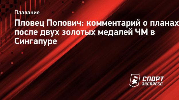 Пловец Попович — о планах после двух золотых медалей ЧМ в Сингапуре: «Отдохнуть на пляже и пить все, что захочу»