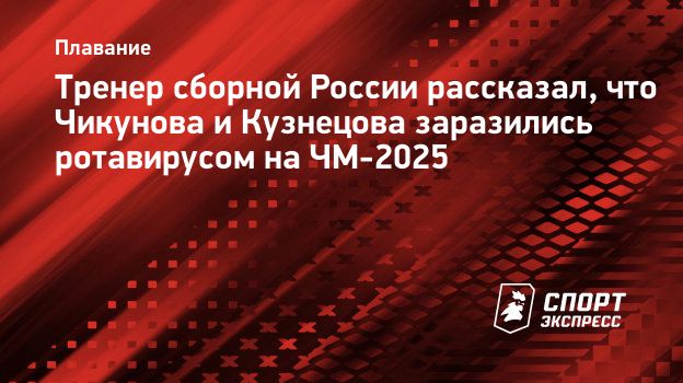 Главный тренер сборной России по плаванию Андрей Шишин рассказал, что Евгения Чикунова и Александра Кузнецова заразились ротавирусом на чемпионате мира по водным видам спорта в Сингапуре.
