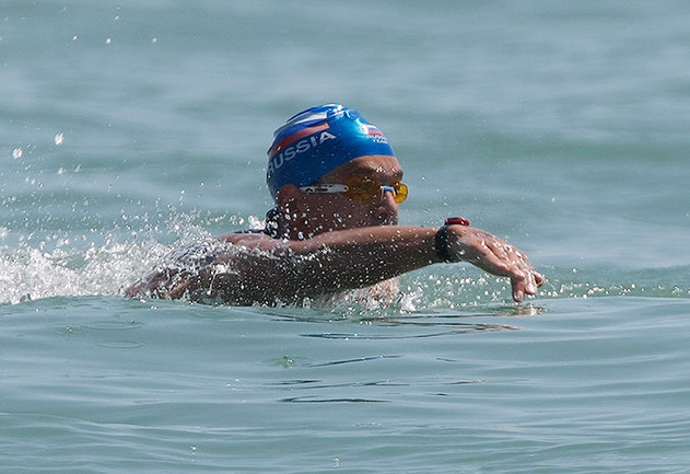 25.07.2009. Рим. Чемпионат мира по водным видам спорта. В марафонских заплывах на открытой воде у России две медали: серебро Анны Уваровой и бронза Владимира Дятчина. Фото Александра ВИЛЬФА, "СЭ"