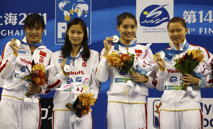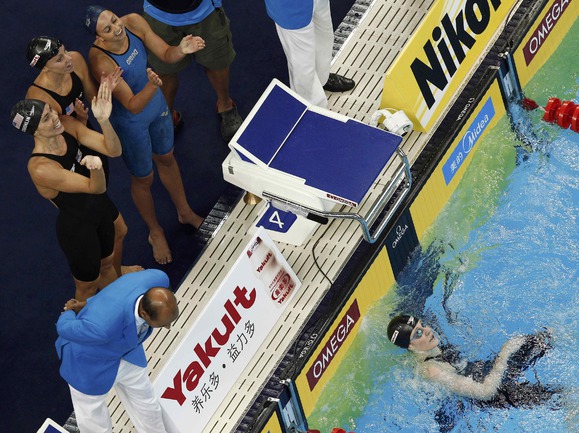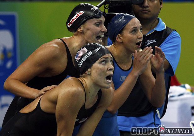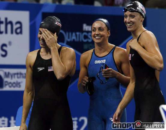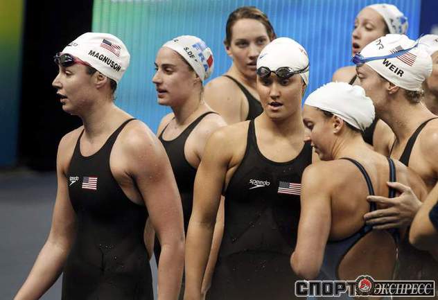 Плавание. Шанхай. Чемпионат мира. Женщины. Комбинированная эстафета, 4х100 метров. Финал. 1. США (Коглин, Сони, Воллмер, Франклин) - 3.52,36. 2. Китай - 3.55,61. 3. Австралия - 3.57,13. 4. РОССИЯ (Зуева, Ефимова, Беспалова, Попова) - 3.57,38. Фото REUTERS
