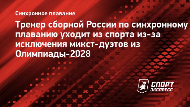Тренер сборной России по синхронному плаванию уходит из спорта из-за исключения микст-дуэтов из Олимпиады-2028