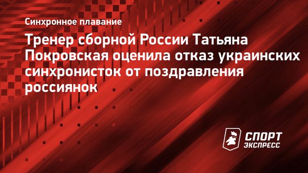 Главный тренер сборной России по синхронному плаванию Татьяна Покровская отреагировала на отказ украинских спортсменок поздравлять россиянок с победой на этапе Кубка мира в Египте.