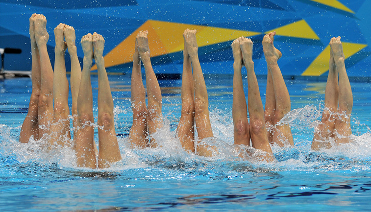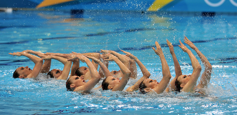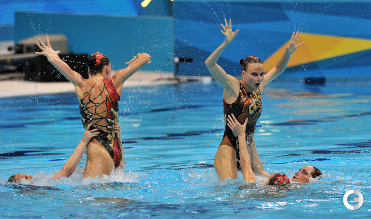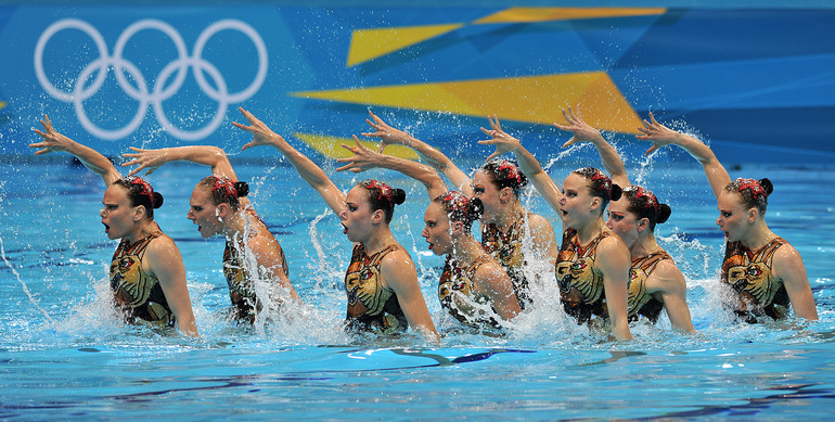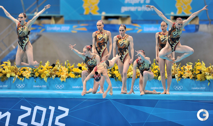 Синхронное плавание. Лондон. Олимпийские игры. Группа. Произвольная программа. 1. РОССИЯ (Давыдова, Хасянова, Ромашина, Громова, Ищенко, Коробова, Тиманина, Пацкевич) - 197,030 балла. 2. Китай - 194,010. 3. Испания - 193,120. 4. Канада - 189,630. 5. Япония - 187,630. 6. Великобритания - 175,440. Фото - Алексей ИВАНОВ, "СЭ"