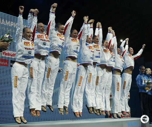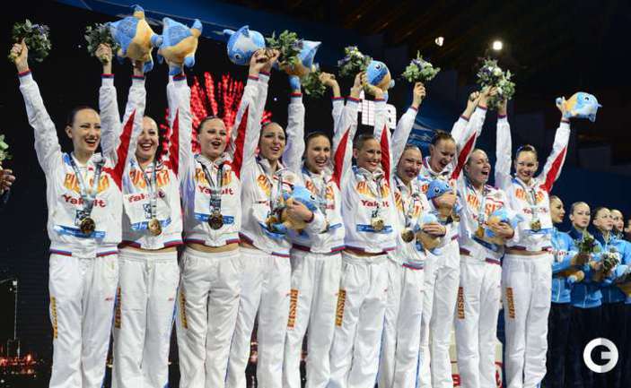 Барселона. Сборная России завоевала золотые медали в комбинации на чемпионате мира по водным видам спорта в Барселоне. Фото AFP, REUTERS
