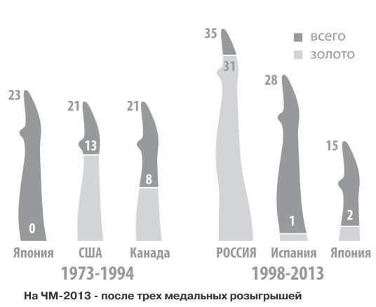 Единственную победу вчера Россия вновь одержала в синхронном плавании. На этот раз наши девушки стали лучшими в технической программе групп. А лидерство в медальном зачете ЧМ-2013 захватил Китай.