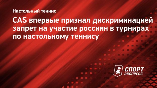 Спортивный арбитражный суд (CAS) признал, что решение Европейского союза настольного тенниса (ETTU) об исключении россиян из соревнований носит дискриминационный характер.