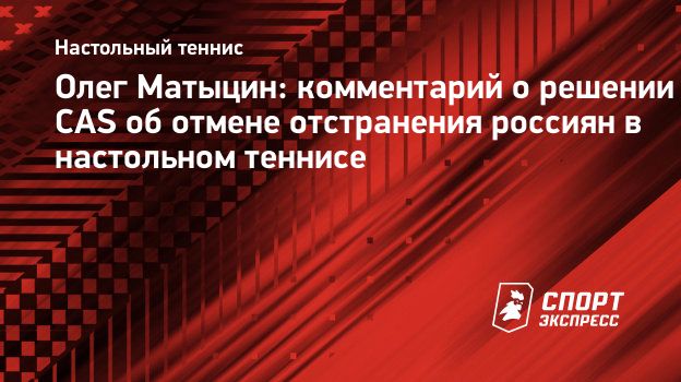 Матыцин — о решении CAS об отмене отстранения россиян в настольном теннисе: «Лед тронулся!»