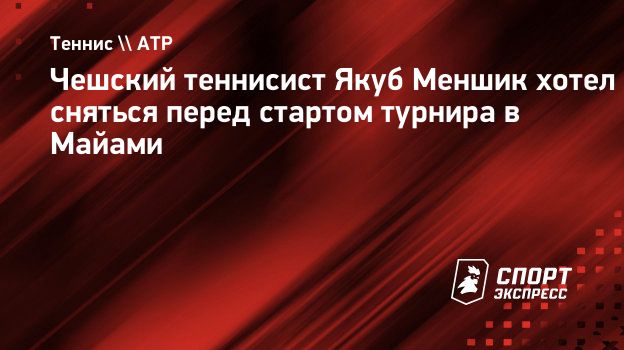 Чешский теннисист Якуб Меншик признался, что хотел сняться с «мастерса» в Майами перед стартовым матчем.