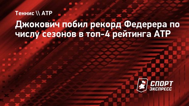 Джокович побил рекорд Федерера по числу сезонов в топ-4 рейтинга ATP