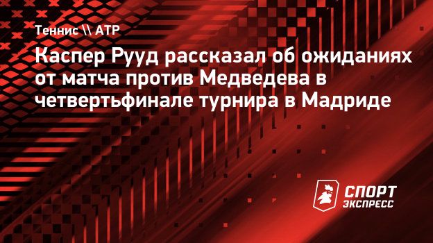 Норвежский теннисист Каспер Рууд поделился ожиданиями от матча против россиянина Даниила Медведева в четвертьфинале «мастерса» в Мадриде.