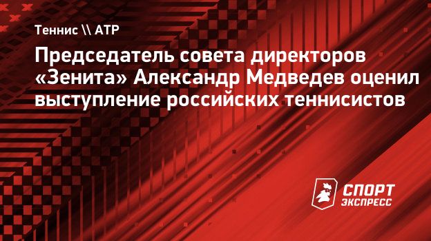 Председатель совета директоров «Зенита» Александр Медведев в комментарии для «СЭ» поделился мнением о выступлении российских теннисистов на турнирах АТР и WTA в нынешнем сезоне.
