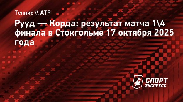 Норвежец Каспер Рууд вышел в полуфинал турнира в Стокгольме.