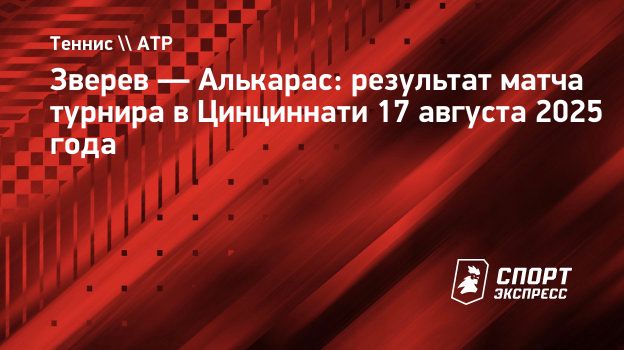 Испанский теннисист Карлос Алькарас в полуфинале турнира в Цинциннати обыграл немца Александра Зверева со счетом 6:4, 6:3.