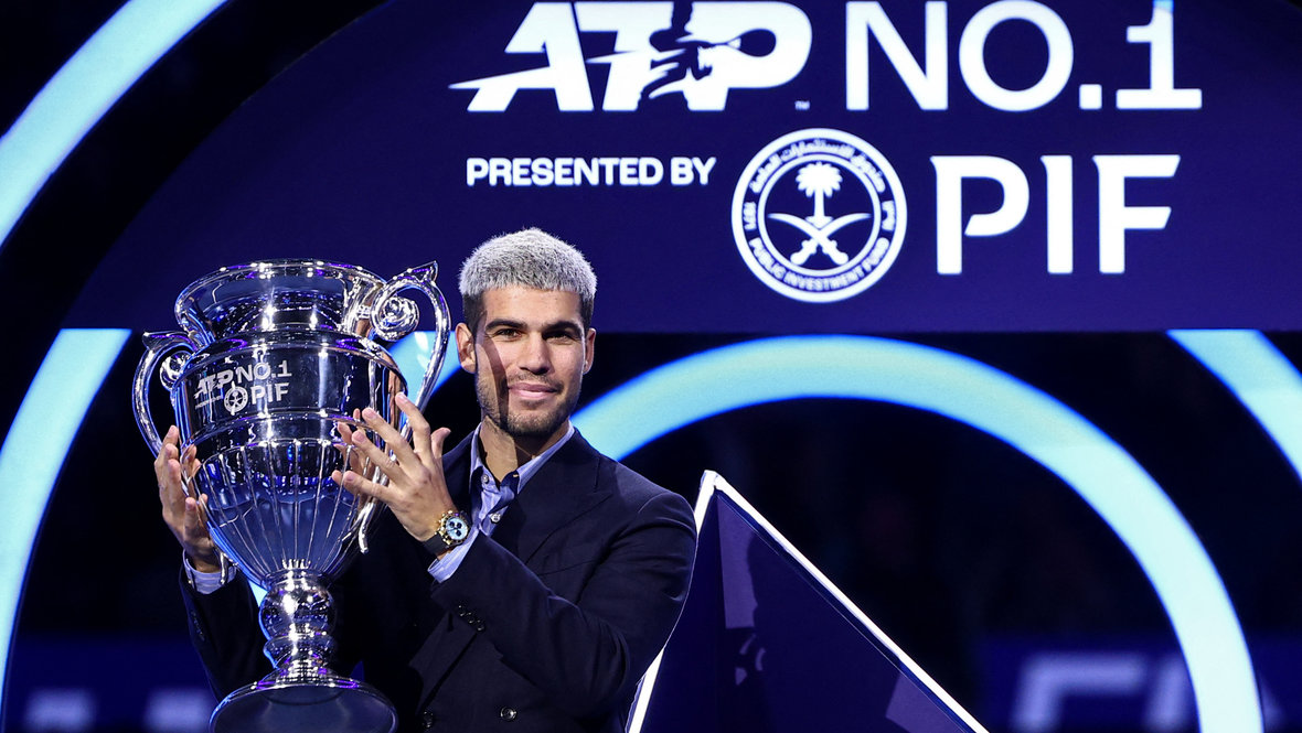 Днем 14 ноября, как раз перед стартом уже ничего не решавшего поединка Янника Синнера с Беном Шелтоном, на центральном корте прошла церемония чествования Карлоса как первой ракетки мира по итогам сезона. 22-летний Алькарас второй раз в карьере заканчивает год на вершине рейтинга. Конечно, это далеко не рекорд. Новак Джокович был лучшим восемь раз (последний — в 2023-м), Пит Сампрас — шесть (причем подряд, что является рекордом), Роджер Федерер, Рафаэль Надаль, а также Джимми Коннорс, имя которого носит одна из групп этого турнира, — по пять.