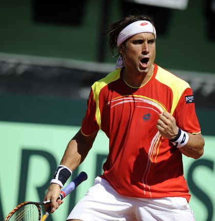 Теннис. Хихон. Кубок Дэвиса. 1/2 финала. Открытый корт, грунт. Испания - США - 1:0. Феррер - Керри (США) – 4:6, 6:2, 6:2, 6:4. Швейцария - Нидерланды - 1:0. Роджер Федерер - Тьемо де Баккера - 6:3, 6:4, 6:4. Стив Дарси(Бельгия) - Михаэль Ридерстедт - 6:3, 7:6 (7:3), 6:0. Фото AFP