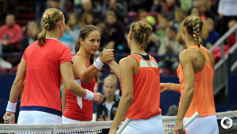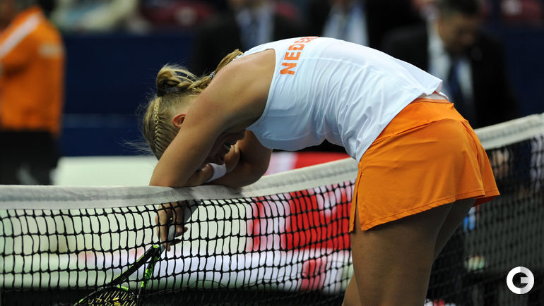 Светлана Кузнецова в матче в рамках 1/4 финала Кубка федерации уступила Кики Бертенс - 1:6, 4:6. Таким образом, счет в поединке стал 3:0 в пользу Голландии, и Россия потеряла шансы на продолжение борьбы. Финалист прошлогоднего розыгрыша Кубка федерации сборная России проиграла матч стартового раунда Мировой группы во второй раз за три года. В сезоне-2014, команда Анастасии Мыскиной уступила на выезде Австралии. Теперь сборную России ждет матч плей-офф с кем-то из победителей Мировой группы II, где проходят встречи Словакия - Австралия (счет после первого дня 1:1), Канада - Белоруссия (1:1), США - Польша (2:0), Сербия - Испания (0:2). Екатерина Макарова и Дарья Касаткина одержали победу над Синди Бургер и Арантой Рус в рамках 1/4 финала Кубка федерации – 6:0, 6:2. Отметим, что эта встреча не имела турнирного значения, так как сборная Голландии досрочно гарантировала себе выход в полуфинал. Фото Никита УСПЕНСКИЙ, "СЭ"