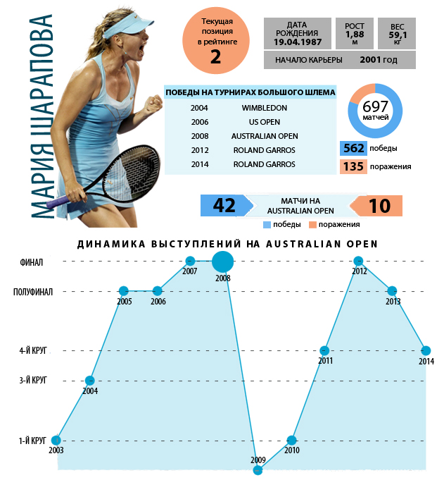 Россиянка Мария Шарапова в первом круге Australian Open встретится с Петрой Мартич из Хорватии, прошедшей через квалификацию. "СЭ" изучил статистику выступлений лучшей отечественной теннисистки последних лет на первом в году турнире "Большого шлема":