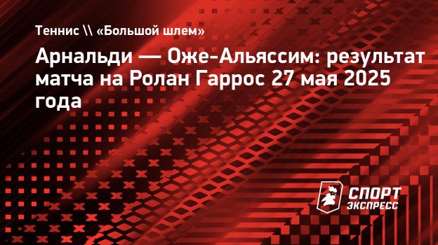 Арнальди отыгрался с 0:2 по сетам и за 4 часа победил Оже-Альяссима на «Ролан Гаррос»