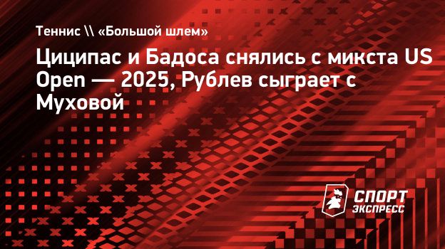 Циципас и Бадоса снялись с микста US Open — 2025, Рублев сыграет с Муховой