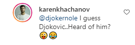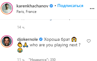 Джокович оставил комментарий под постом Хачанова. Фото Instagram