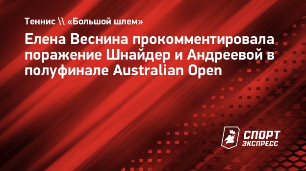 Российская теннисистка Елена Веснина прокомментировала «СЭ» поражение Дианы Шнайдер и Мирры Андреевой в полуфинале парного турнира Australian Open чешке Катержине Синяковой и американке Тэйлор Таунсенд (7:6 (7:4), 4:6, 3:6).