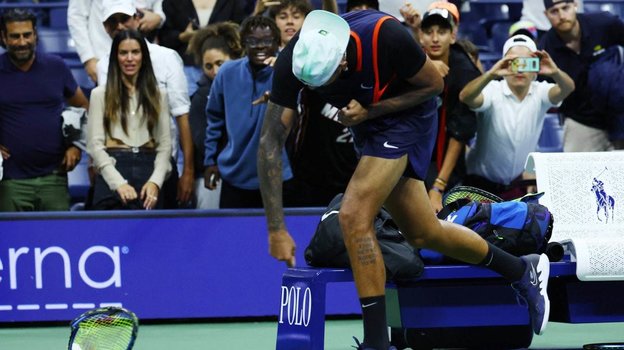Австралиец Ник Кирьос после поражения россиянину Карену Хачанову в четвертьфинале US Open сломал свою ракетку, не сдержав эмоций.