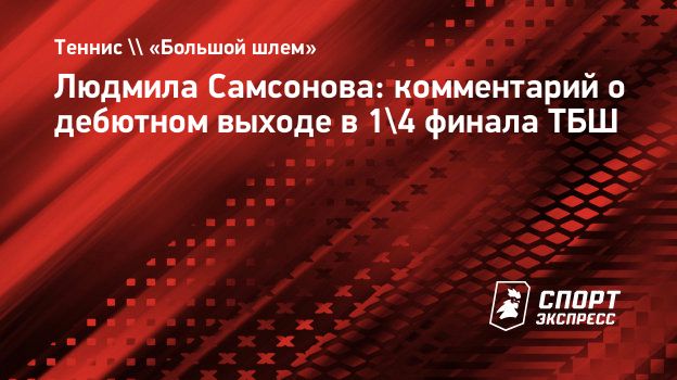 Российская теннисистка Людмила Самсонова прокомментировала выход в свой дебютный четвертьфинал турнира «Большого шлема».
