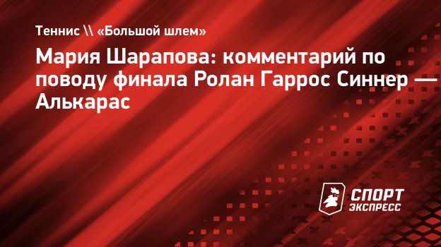 Пятикратная чемпионка турниров «Большого шлема» и бывшая первая ракетка мира Мария Шарапова прокомментировала финал «Ролан Гаррос» между итальянцем Янником Синнером и испанцем Карлосом Алькарасом.