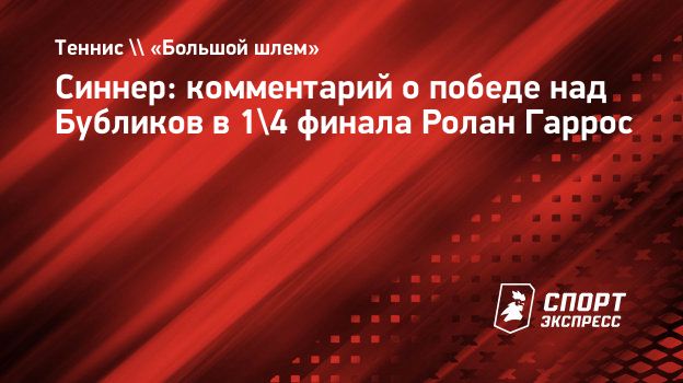 Первая ракетка мира Янник Синнер прокомментировал победу в четвертьфинале «Ролан Гаррос» над Александром Бубликом из Казахстана (6:1, 7:5, 6:0).