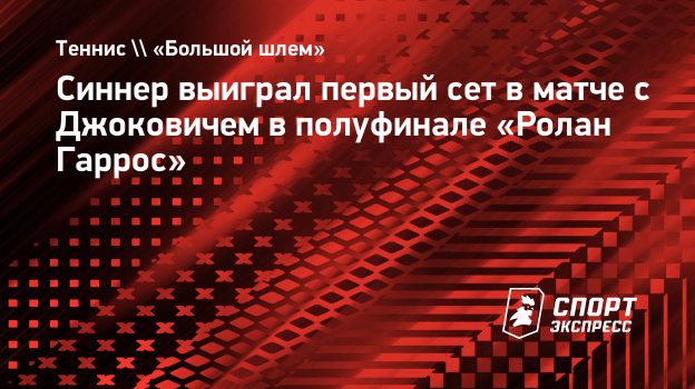 Итальянец Янник Синнер выиграл первый сет полуфинала «Ролан Гаррос» у серба Новака Джоковича со счетом 6:4.