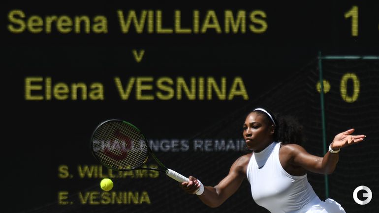 Россиянка Елена Веснина уступила первой ракетке мира Серене Уильямс в полуфинале Уимблдона. Матч продолжался всего 48 мнут и завершился со счетом 6:2, 6:0. Американка исполнила 11 эйсов и выиграла 23 из 24 розыгрышей на первой подаче. Она заработала 28 активно выигранных очков при 7 невынужденных ошибках, в то время как у Весниной эти показатели составили 9-7. В финале Уильямс сыграет либо со своей старшей сестрой Винус, либо с немкой Ангеликой Кербер, которой в январе проиграла в титульной встрече Australian Open.