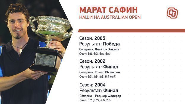 Кто из российских теннисистов добился лучших результатов в одиночном разряде первого в сезоне турнира «Большого шлема». В списке чемпионов Мельбурна — Евгений Кафельников, Марат Сафин и Мария Шарапова.