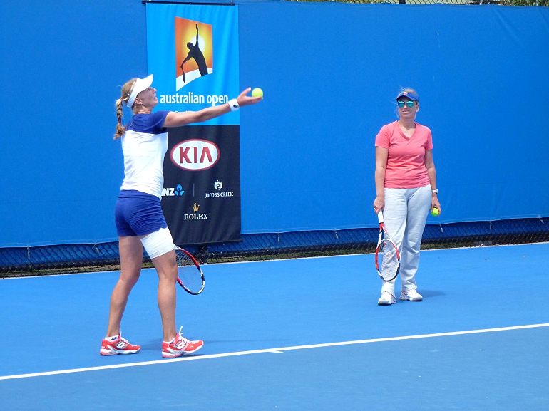 "Катюха, конечно, молодец", – сказал Александр Красноруцкий, спарринг-партнер российской дебютантки полуфиналов Australian Open, с которым я столкнулся прямо у входа в подтрибунные помещения Арены Рода Лэйвера, где располагаются пресс-центр, рестораны и раздевалки. А с Евгенией Манюковой, тренером Макаровой, мы поговорили уже после того как на 9-м корте закончилась их тренировка.