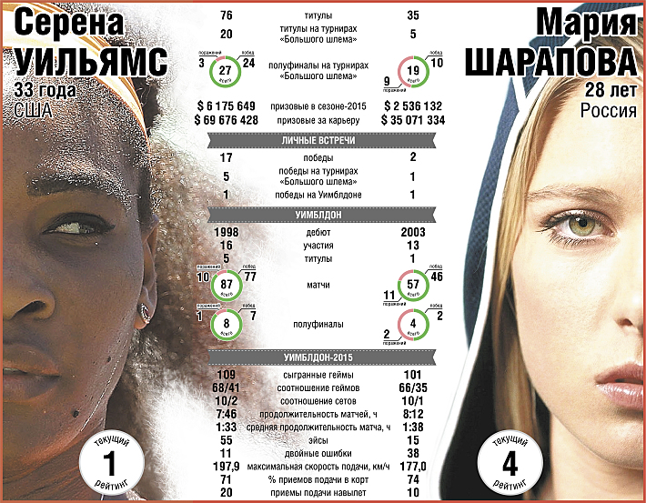 – В первую очередь я надеюсь на то, что Маше в данном случае просто не имеет смысла волноваться. Потому что сейчас победить американку можно только в том случае, если удастся поднять на новую высоту уровень своей игры. Маша же на нынешнем Уимблдоне пока не очень уверена в себе, хотя и не говорит об этом открыто. У нее достаточно брака, и количество ошибок превышает число очков, которые она выигрывает сама. Серена же в четвертьфинале против Азаренко показала фантастический теннис. Крайне редкая статистика – 12 невынужденных ошибок против 46 чистых выигрышей – говорит сама за себя.