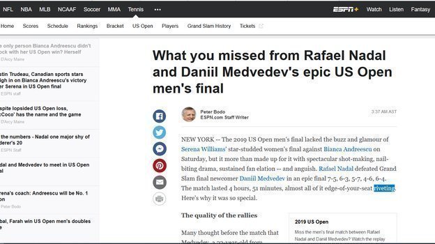 Рафаэль Надаль заставил весь мир восхищаться тем, как боролся в финале Открытого чемпионата США, но и побежденный им Даниил Медведев собрал свою порцию хвалебных отзывов. «СЭ» изучил, что пишут мировые СМИ об эпичном матче.