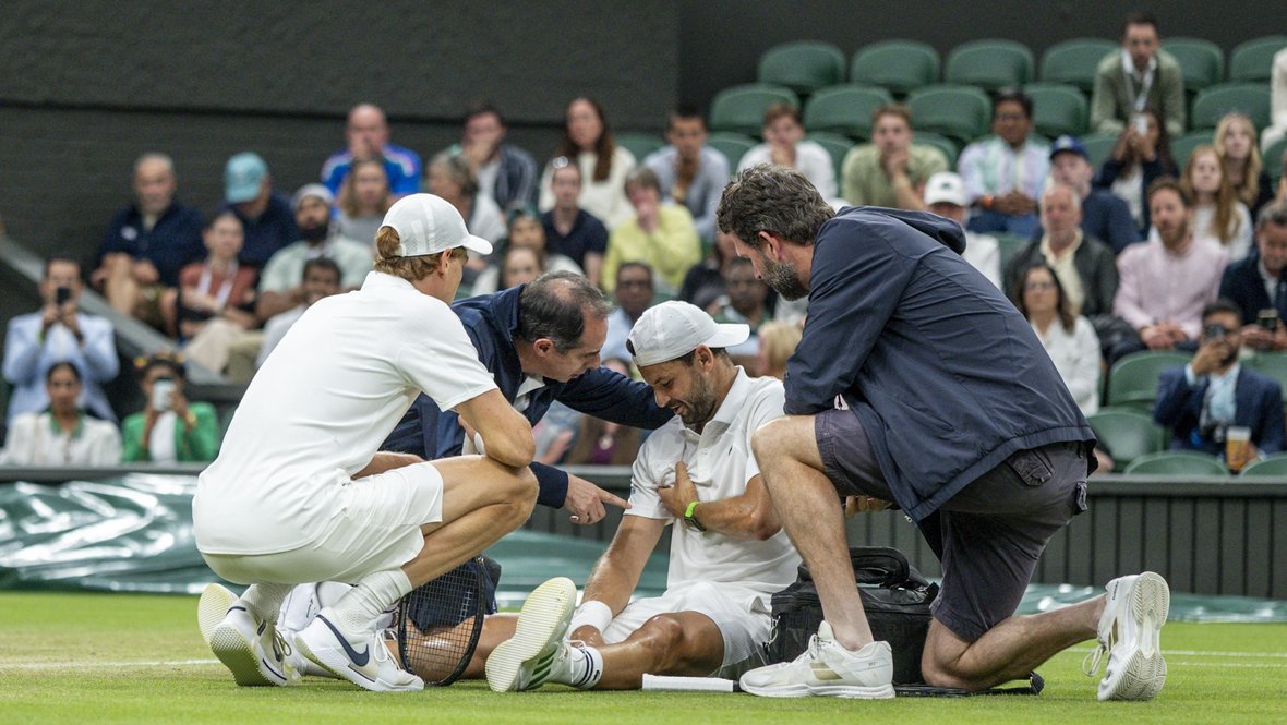 В 1/8 финала Уимблдона чуть не произошла сенсация. Первая ракетка мира Янник Синнер проиграл два сета Григору Димитрову и был близок к поражению, но итальянца спас несчастный случай: соперник снялся из-за травмы грудной мышцы. Причем произошло это максимально неожиданно.