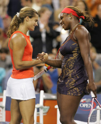 Как сообщает Reuters, первая ракетка мира Амели Моресмо, обыгравшая сегодня ночью в матче четвертого круга US Open американку Серену Уильямс (6:4, 0:6, 6:2), заявила, что очень рада этой победе - в том числе и потому, что в предыдущих 10 матчах с Уильямс она потерпела 9 поражений. |