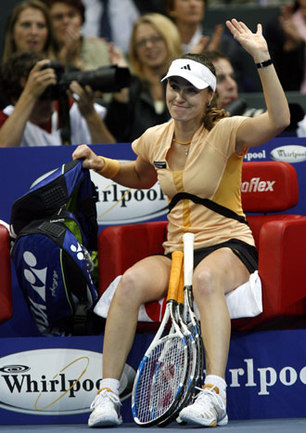 Несмотря на поражение от россиянки Светланы Кузнецовой в четвертьфинале турнира в Цюрихе, экс-первая ракетка мира Мартина Хингис осталась очень довольна уровнем продемонстрированной ею игры, сообщает Reuters. "Я давно не играла так хорошо, как сегодня, - сказала швейцарская теннисистка на послематчевой пресс-конференции. - Жаль только, что после великолепного второго сета я сразу же потеряла свою подачу в третьем". |