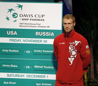 В четверг в Портленде состоялась жеребьевка финального матча Кубка Дэвиса, в котором встретятся сборные России и США. Как уже сообщал "СЭ", капитан российской команды Шамиль Тарпищев принял решение выставить на пятничные одиночные матчи Дмитрия Турсунова и Михаила Южного. Первый сыграет с Энди Роддиком, а второму будет противостоять Джеймс Блэйк. |