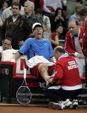 Чешский теннисист Томаш Бердых, который из-за травмы голеностопа не доиграл свой поединок с Николаем Давыденко в рамках четвертьфинального матча Кубка Дэвиса между сборными России и Чехии, не смог прийти на пресс-конференцию, но дал экспресс-интервью пресс-службе турнира, в котором рассказал, что характер повреждения пока не известен, но нога болит настолько сильно, что он не может ходить. |