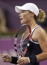 На пресс-конференции после победы над первой ракеткой мира Каролин Возняцки в матче группового этапа итогового турнира года в Дохе, Саманта Стосур заявила, что по итогам назначенного на четверг матча с Еленой Дементьевой надеется завоевать путевку в полуфинал, сообщает Reuters.
